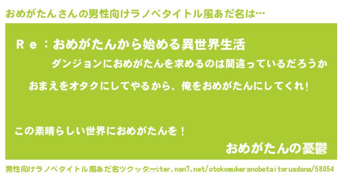 | 女子向けラノベタイトル風あだ名 | 『おめがたん恋絵巻』『闇のおめがたん』 |
