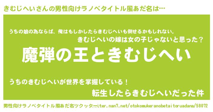 | 意味不明あだ名 | 『住所不定無職きむじへい(62歳)』 |