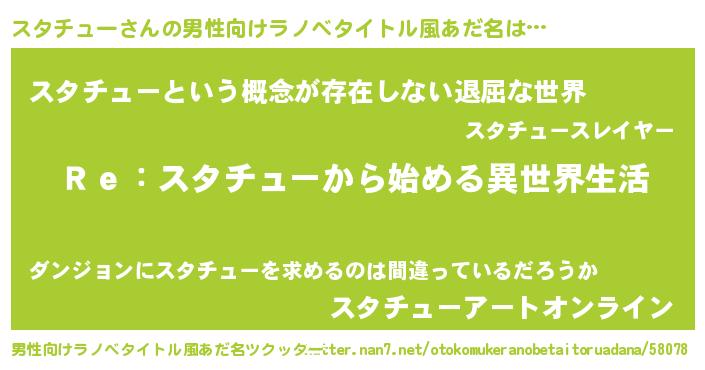 | 意味不明あだ名 | 『自称スタチュー』『永久保存スタチュー』 |