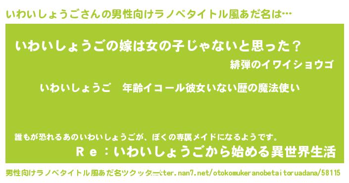 女子向けラノベタイトル風あだ名 | 『いわいしょうごの玉の輿計画!』 |