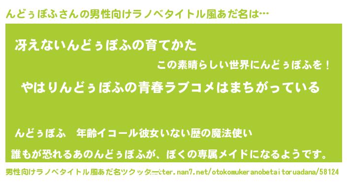 | 女子向けラノベタイトル風あだ名 | 『んどぅぼふ伯爵の花嫁』 |
