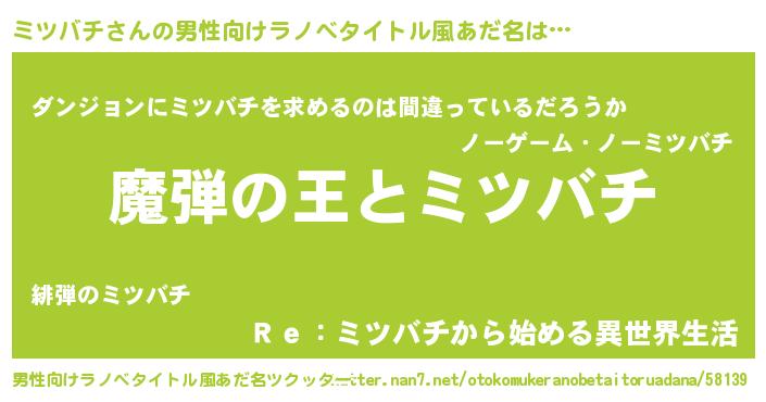 | 意味不明あだ名 | 『住所不定無職ミツバチ(81歳)』 |