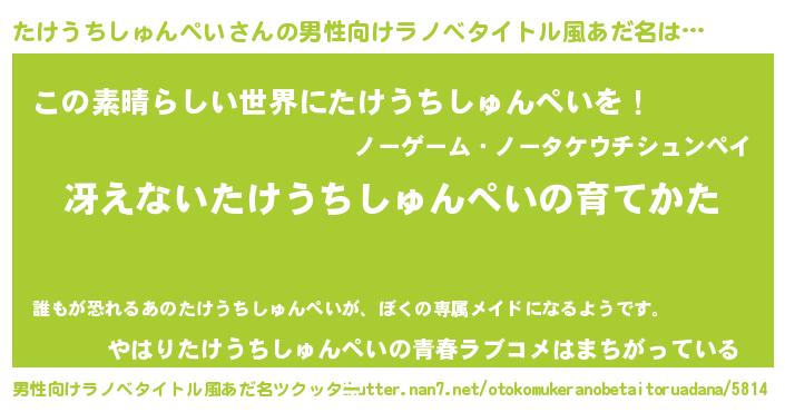 | 意味不明あだ名 | 『住所不定無職たけうちしゅんぺい(4歳)』 |