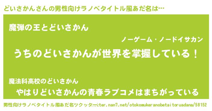| 意味不明あだ名 | 『住所不定無職どいさかん(7歳)』 |
