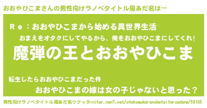 | ヒーロー風カッコイイあだ名 | 『仮面オオダー』『最強戦士オオヤヒコマ』 |