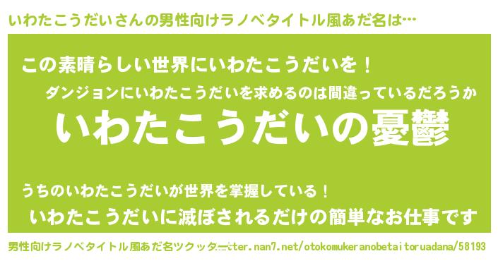 いわたこうだいさんの男性向けラノベタイトル風あだ名をツクッター!