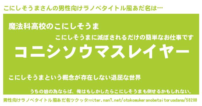 | 肩書あだ名 | 『こにしそうま大佐』『こにしそうま閣下』 |