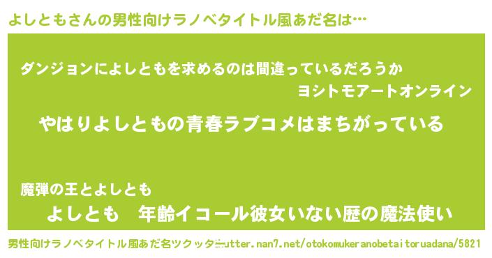| 女子向けラノベタイトル風あだ名 | 『よしともの雑貨屋さん』 |