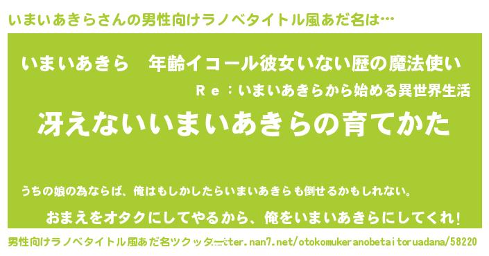 | 女子向けラノベタイトル風あだ名 | 『シンデレラいまいあきら家の靴箱館』 |