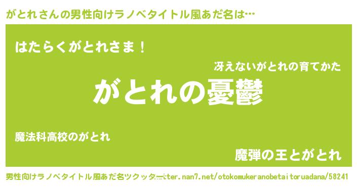 | 胡散臭い通販商品みたいなあだ名 | 『モテモテ間違いなし水晶球…その名も「がとれ」』 |