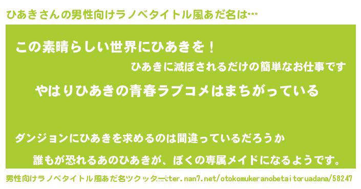| ヒーロー風カッコイイあだ名 | 『ウルトラひあきマン』『仮面ヒアダー』 |
