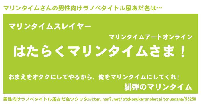 | 胡散臭い通販商品みたいなあだ名 | 『必ず成功するブレスレット…その名も「マリンタイム」』 |