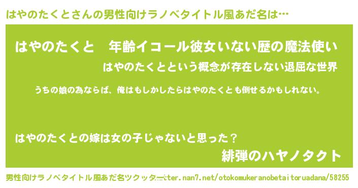 | ファンタジー風あだ名 | 『エターナルハヤノタクトー』 |