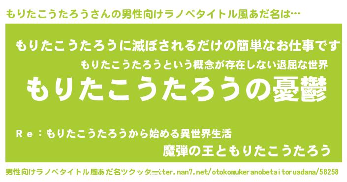 | 女子向けラノベタイトル風あだ名 | 『もりたこうたろう姫と円卓の騎士』 |