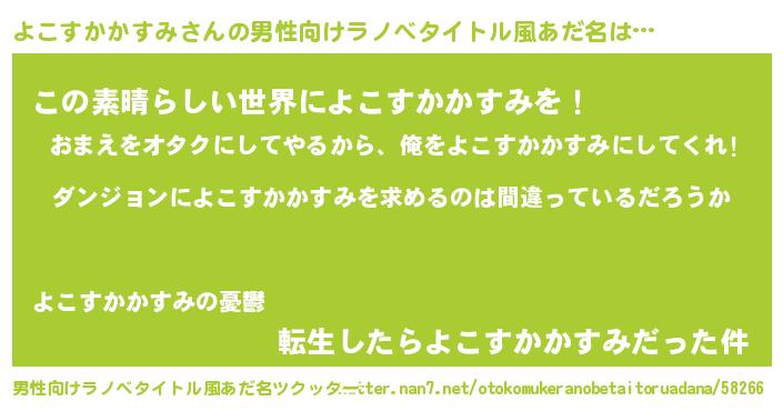 | 女子向けラノベタイトル風あだ名 | 『よこすかかすみの卵を拾いまして』 |