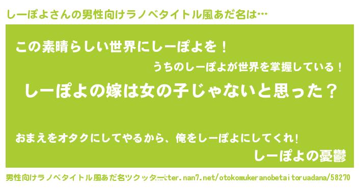| 意味不明あだ名 | 『とにかく怪しいしーぽよ』 |