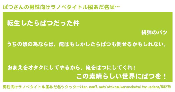 | 女子向けラノベタイトル風あだ名 | 『ぱつの婚約者』『ぱつ夫妻のなれそめ』 |