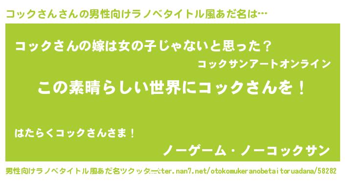 | 女子向けラノベタイトル風あだ名 | 『乙女ゲームの破滅フラグしかない悪役コックさんに転生してしまった…』 |