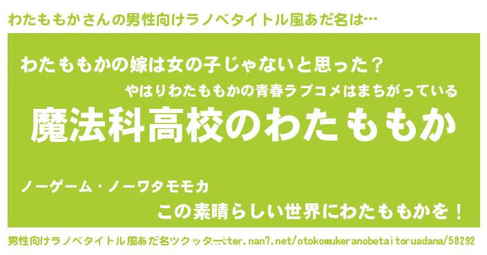 | 女子向けラノベタイトル風あだ名 | 『わたももかなんてお断りですっ。』 |