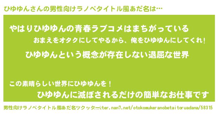 | 胡散臭い通販商品みたいなあだ名 | 『来世でも幸せになれる水素水…その名も「ひゆゆん」』 |