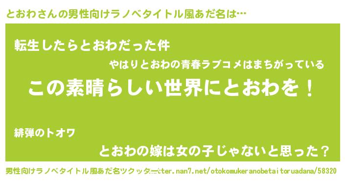 とおわさんの男性向けラノベタイトル風あだ名をツクッター!
