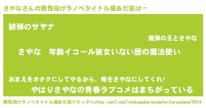 | ヒーロー風カッコイイあだ名 | 『ウルトラさやなマン』『仮面サヤダー』 |