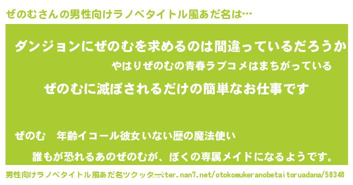 | 伝説のあだ名 | 『覚醒した魔法使いぜのむ』 |