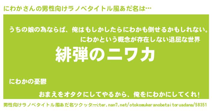 | 女子向けラノベタイトル風あだ名 | 『シンデレラにわか家の靴箱館』 |