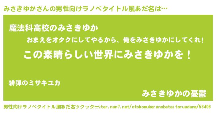 | 意味不明あだ名 | 『住所不定無職みさきゆか(3歳)』 |