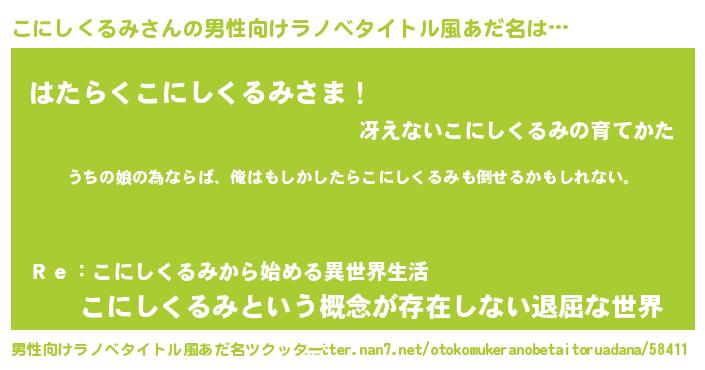 | 意味不明あだ名 | 『こにしくるみフォーエバー』 |