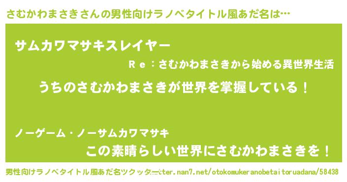 | ヘコむあだ名 | 『さむもー』『さむお』『なまこ酢』 |