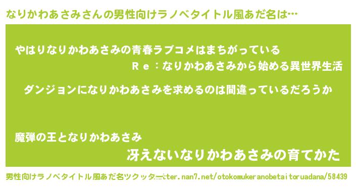 | 女子向けラノベタイトル風あだ名 | 『なりかわあさみは平凡を望む』 |