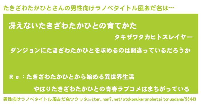 | 胡散臭い通販商品みたいなあだ名 | 『信頼と実績のペンダント…その名も「たきざわたかひと」』 |