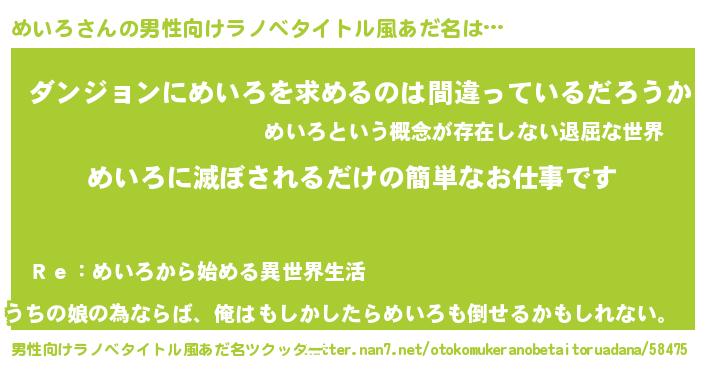 | 女子向けラノベタイトル風あだ名 | 『横柄めいろと宰相陛下』『闇のめいろ』 |