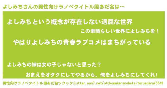 | 女子向けラノベタイトル風あだ名 | 『よしみちの雑貨屋さん』 |