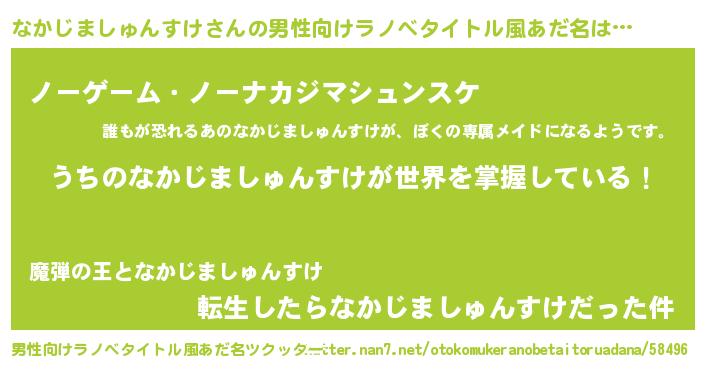 | 女子向けラノベタイトル風あだ名 | 『男装なかじましゅんすけの憂鬱な任務』 |