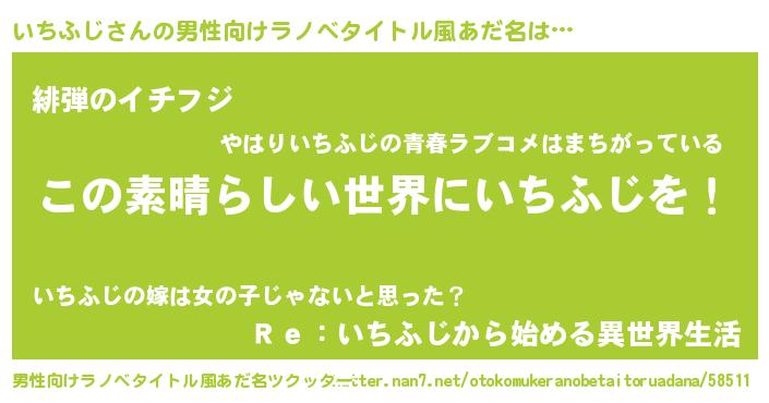 | 女子向けラノベタイトル風あだ名 | 『乙女ゲームの破滅フラグしかない悪役いちふじに転生してしまった…』 |