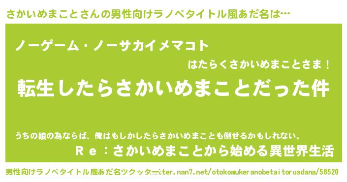 | 肩書あだ名 | 『さかいめまこと少将』 |