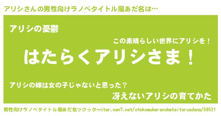 | 意味不明あだ名 | 『ペロリンアリシ』『永久保存アリシ』 |