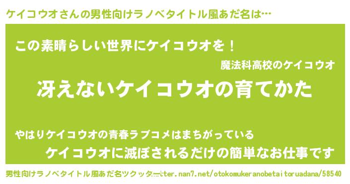 | 胡散臭い通販商品みたいなあだ名 | 『世界中を虜にした世界で10本だけ現存している希少なブランデー…その名も「ケイコウオ」』 |