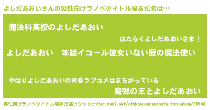 | 女子向けラノベタイトル風あだ名 | 『よしだあおいの玉の輿計画!』 |