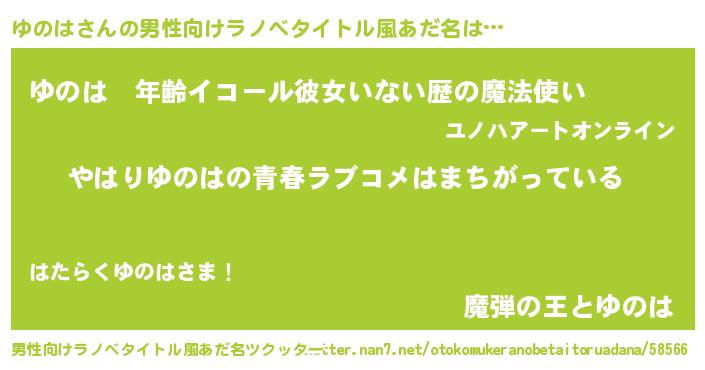 | 女子向けラノベタイトル風あだ名 | 『ゆのは伯爵の花嫁』 |