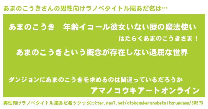 | 胡散臭い通販商品みたいなあだ名 | 『来世でも幸せになれる健康食品…その名も「あまのこうき」』 |