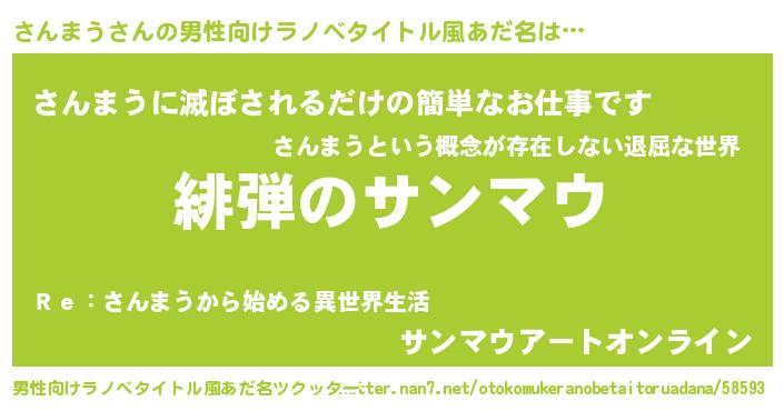 | ヘコむあだ名 | 『さんふぇ~』『さんまう(小並感)』 |