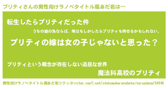 | ヒーロー風カッコイイあだ名 | 『幻影騎士プリ』『ウルトラ戦士プリティ』 |