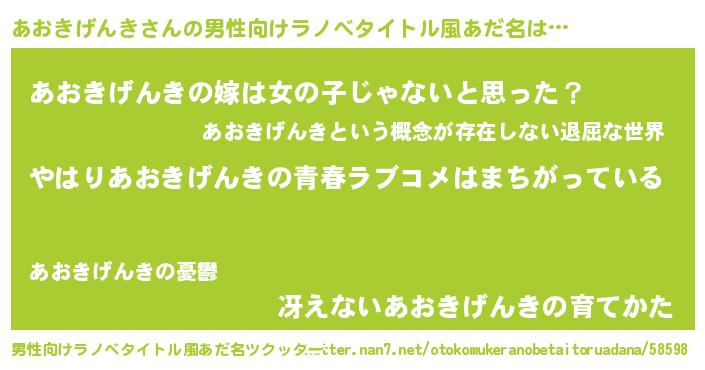 | 女子向けラノベタイトル風あだ名 | 『あおきげんきの雑貨屋さん』 |