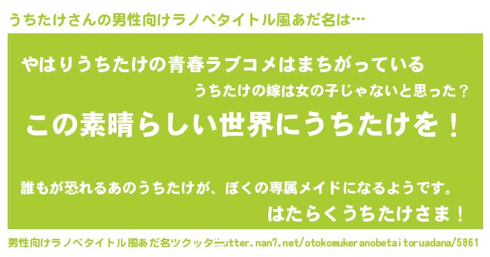 | 意味不明あだ名 | 『住所不定無職うちたけ(53歳)』 |