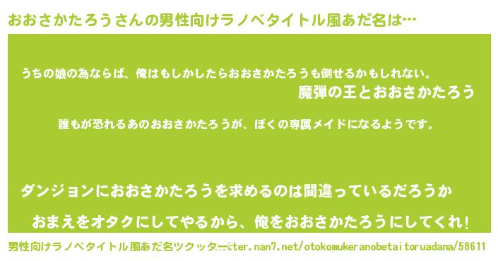 | 伝説のあだ名 | 『古文書に記された勇者おおさかたろう』 |