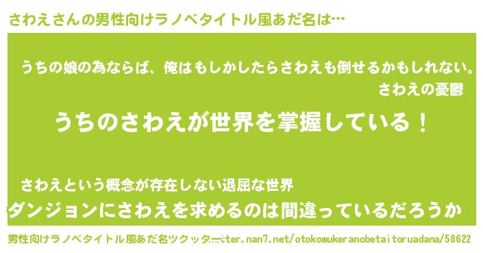 | 意味不明あだ名 | 『さわえフォーエバー』『ペロリンさわえ』 |