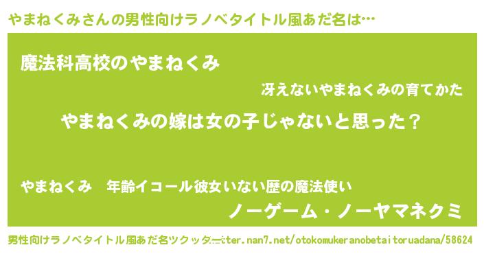 | 女子向けラノベタイトル風あだ名 | 『やまねくみの卵を拾いまして』 |